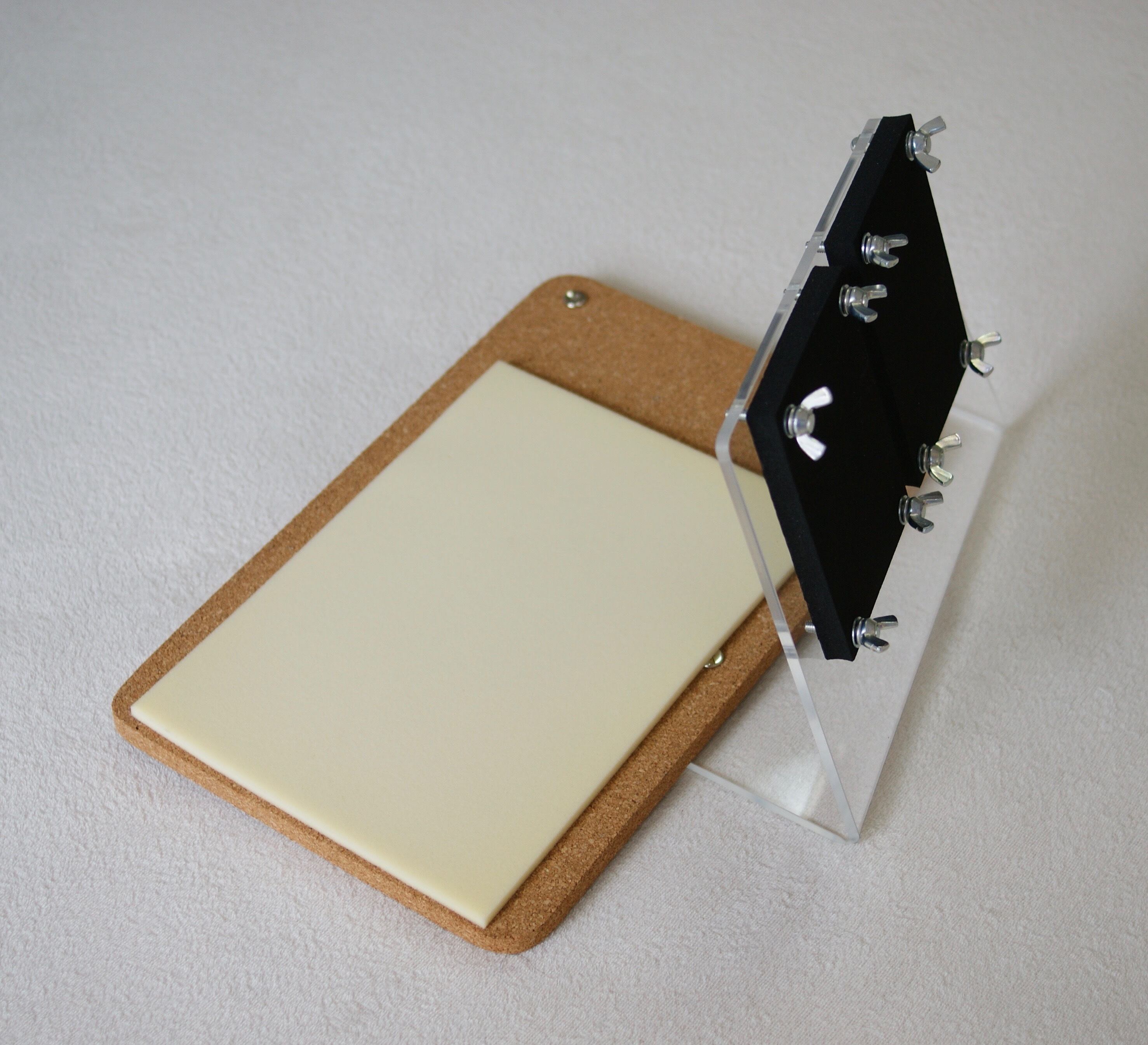 パラレル(Para-axial)式ポート配置専用の練習ボックスと、コルクボード、練習用スポンジセットです。黒い部分のスポンジゴム2枚も付属しています。